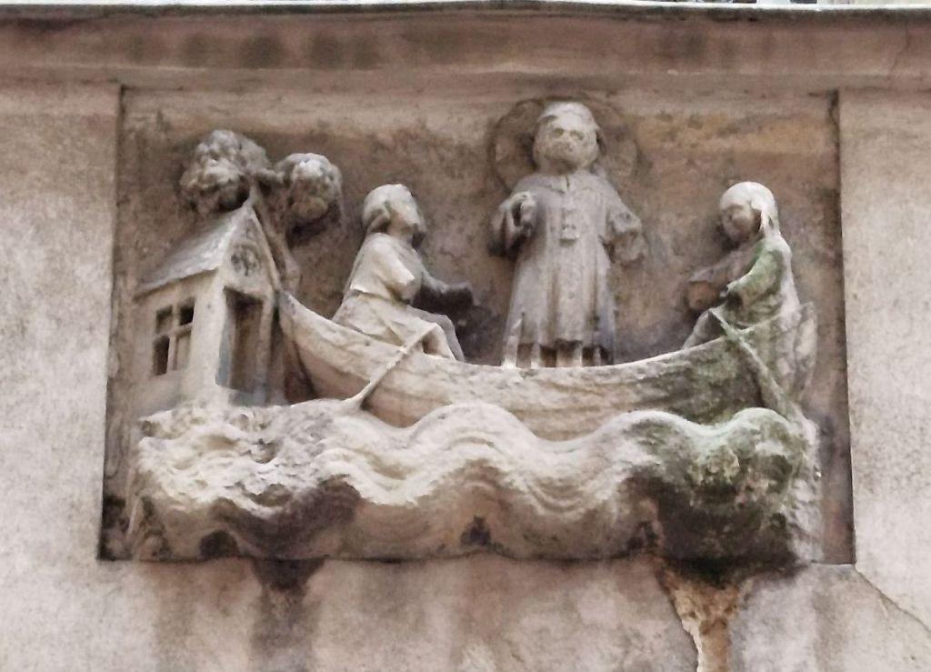 Décoration du bel étage avec des sgraffites (technique qui consiste à orner du mortier d’un dessin gravé)