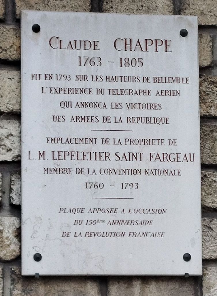 Le lieu a été utilisé pour des expériences de télégraphe optique par Claude Chappe de 1790 à 1798. (le cimetière se trouve au point le plus haut de l’Est de Paris)