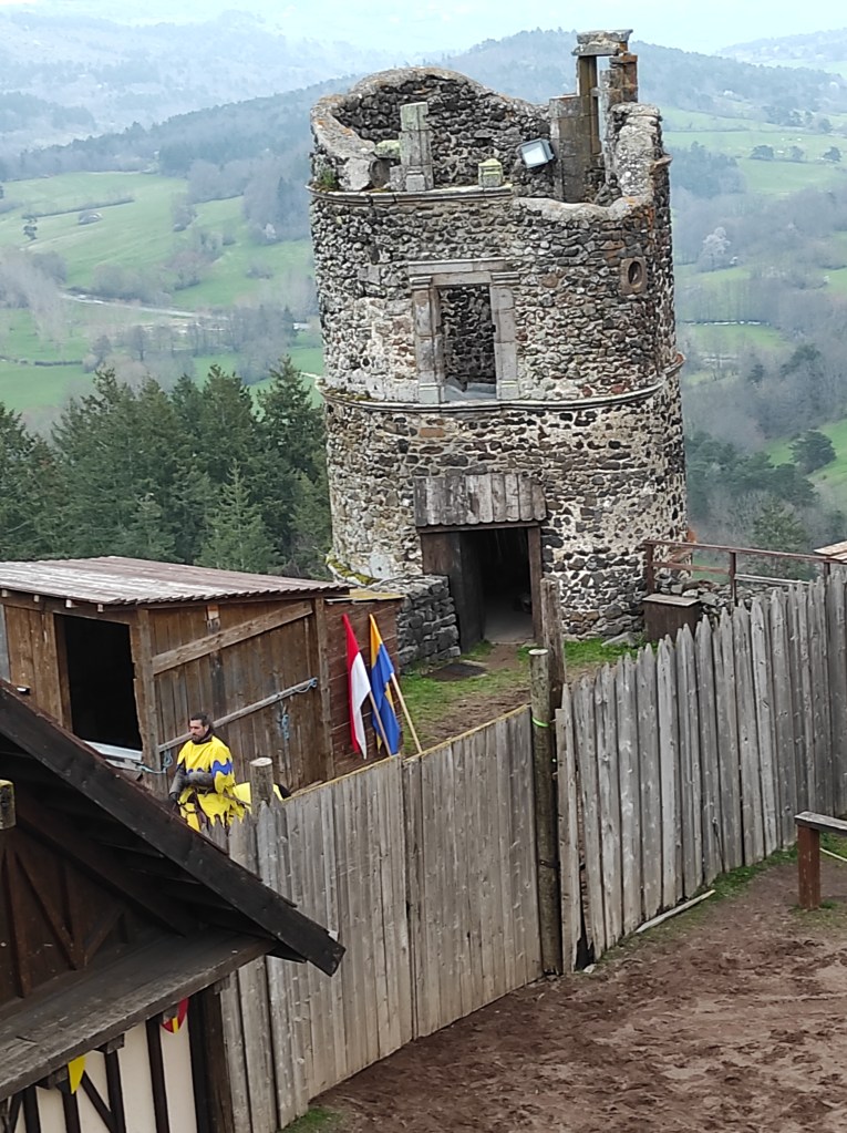 L’après midi, balade pour la visite du château de Murol. Longue montée, escaliers… Mais les efforts en valaient la peine, belle vue malgré le temps couvert. Puis joute des chevaliers