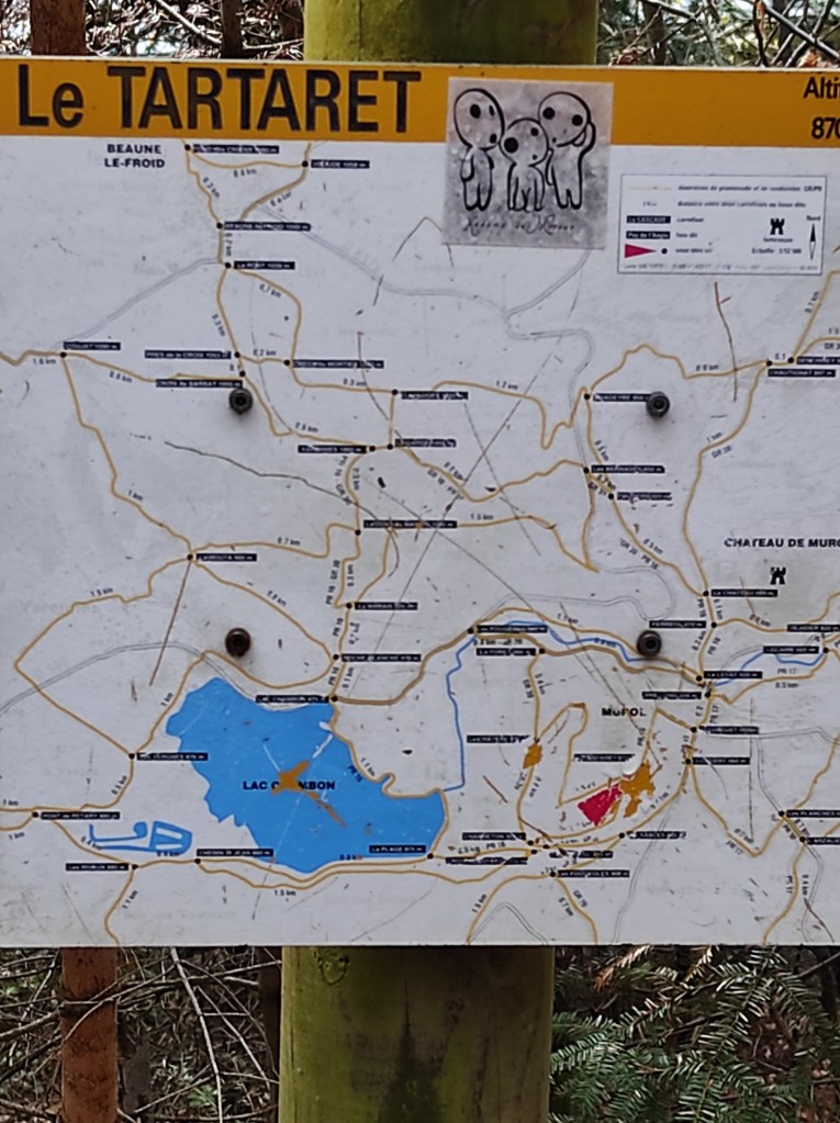 Après-midi, tour du lac Chambon au départ du centre (6,6 km). Il a été formé par le volcan du Tartaret qui a obstrué le lit de la Couze Chambon. Peu profond (4 m), mais assez vaste (60 ha),