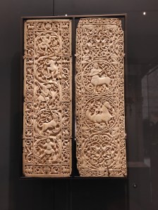 Le remploi de ces plaques sculptées sur chaque face a entraîné un arasement de leurs avers sur lesquels on devine des scènes de la vie du Christ traitées dans un style insulaire (britanniques). Les revers présentent, dans un cadre de feuilles d’acanthe, des rinceaux peuplés d’animaux exotiques ou fabuleux. Ce second état de sculpture a pu être réalisé dans un atelier au sud des Alpes.